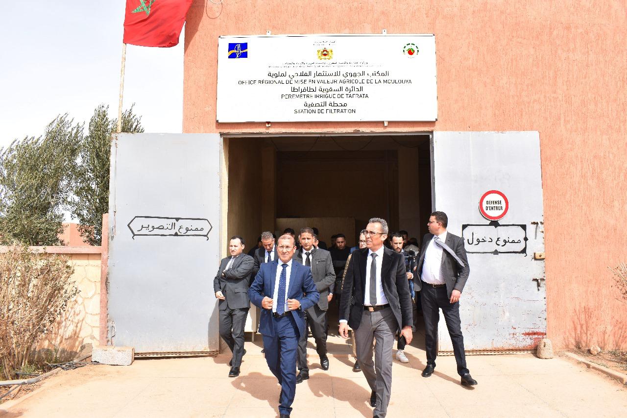وفي خضم هذه الزيارة قام السيد عامل الإقليم والوفد المرافق له مصحوبا بأعضاء جمعية “الأمل” لمستعملي المياه المخصصة للأغراض الزراعية لسهل تافراطة، بجولة ميدانية اطلع من خلالها عن قرب، على التقنيات المعتمدة في ري الأشجار المثمرة والخضراوات، ولأجل تلافي التحديات المرتبطة بنقص الموارد المائية أهاب السيد العامل بالمسؤولين علر ضرورة ترشيد استخدام مياه السقي، لضمان استدامتها في ظل سياق موسوم بالتحديات المناخية وتوالي سنوات الجفاف.