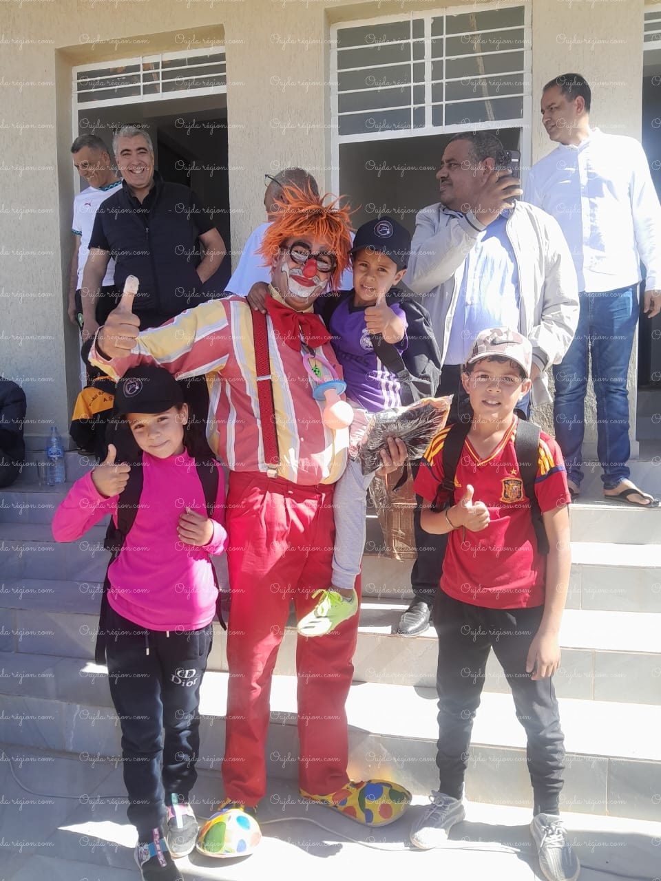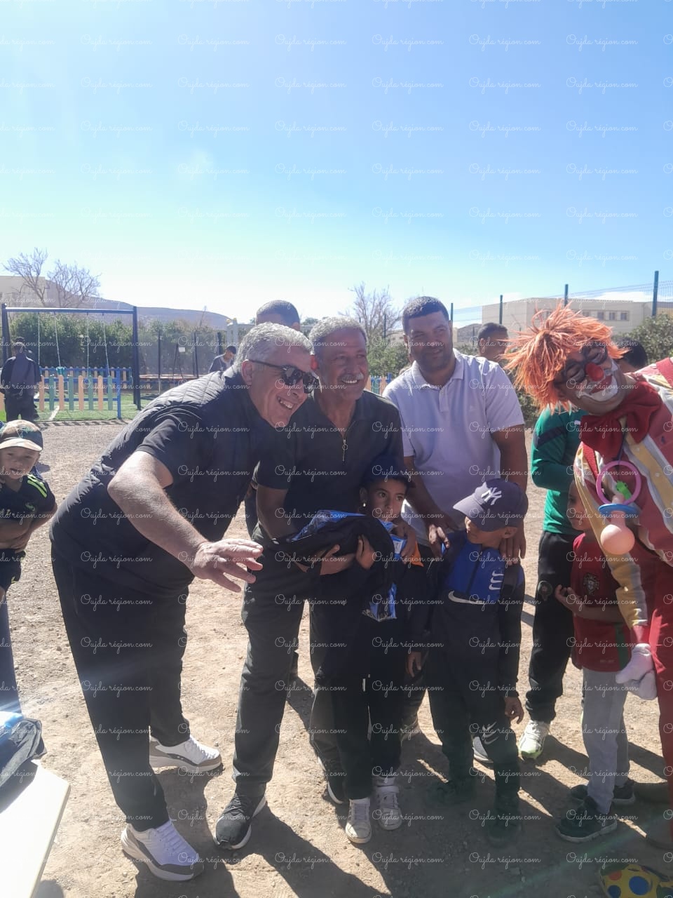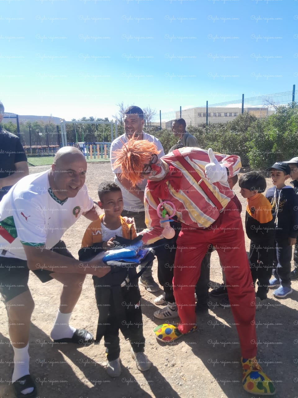 تميز الحفل بتنشيط رائع من طرف البهلوان الشهير “عمي مسعود” الذي أضفى أجواء من الفرح والضحك على الصغار والكبار، إضافةً إلى عروض كروية جميلة قدّمها براعم المدرسة أبانوا من خلالها عن مهارات واعدة. إثر ذلك قام السيد توفيق موسي بمعية أعضاء المكتب المسير والسيد رئيس الجماعة بتسليم البذل الرياضية الجديدة الخاصة بالمدرسة