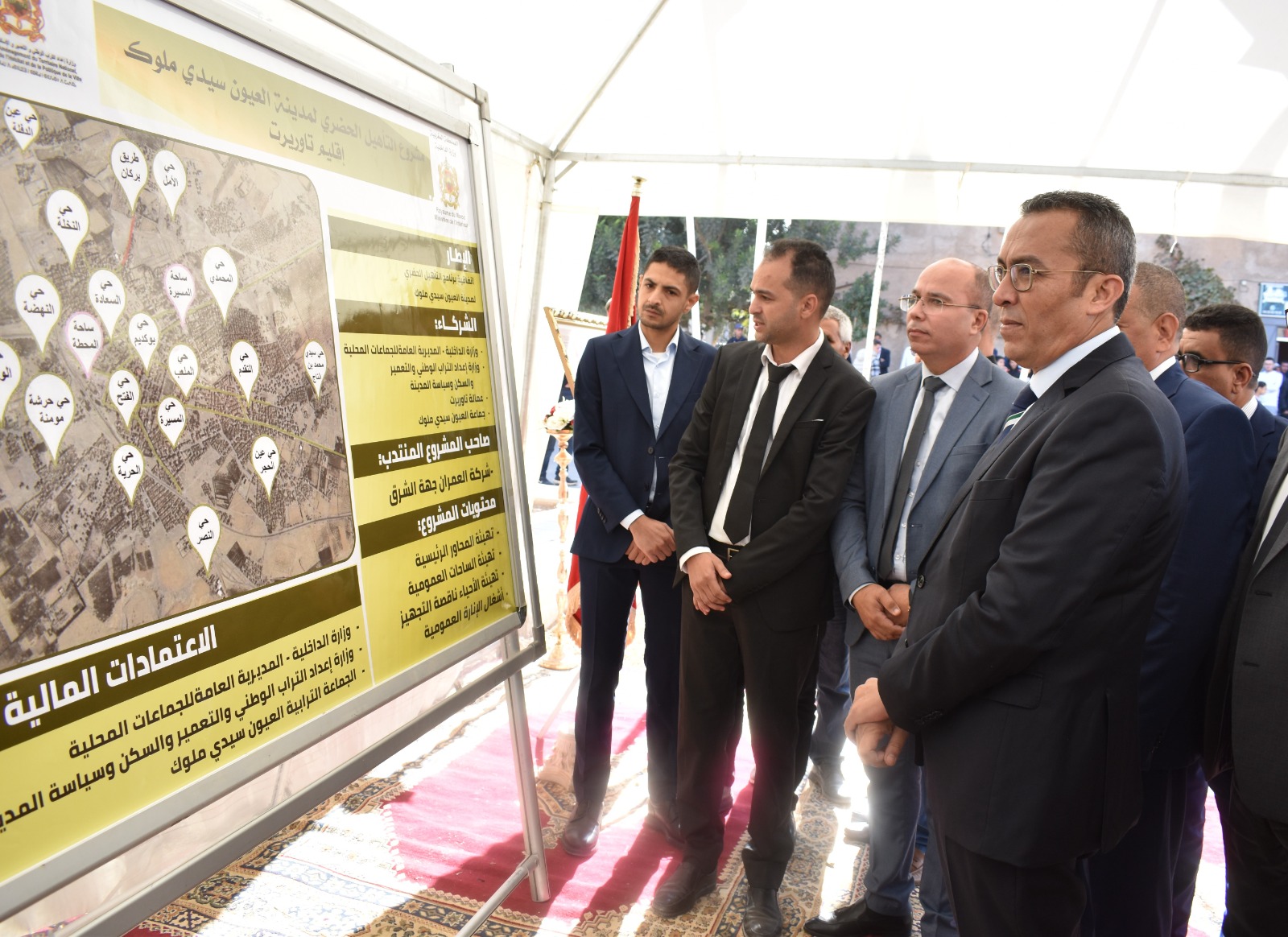 حيث استهل السيد العامل هذه الزيارة بالاطلاع على برنامج التهيئة الحضرية لمدينة العيون الذي يشتمل على مشاريع، تهيئة الأحياء ناقصة التجهيز وبناء وتطوير المحاور الطرقية الأساسية وتهيئة الساحات العمومية، وكذا تقوية شبكة الانارة العمومية بالطرقات الرئيسية للمدينة.