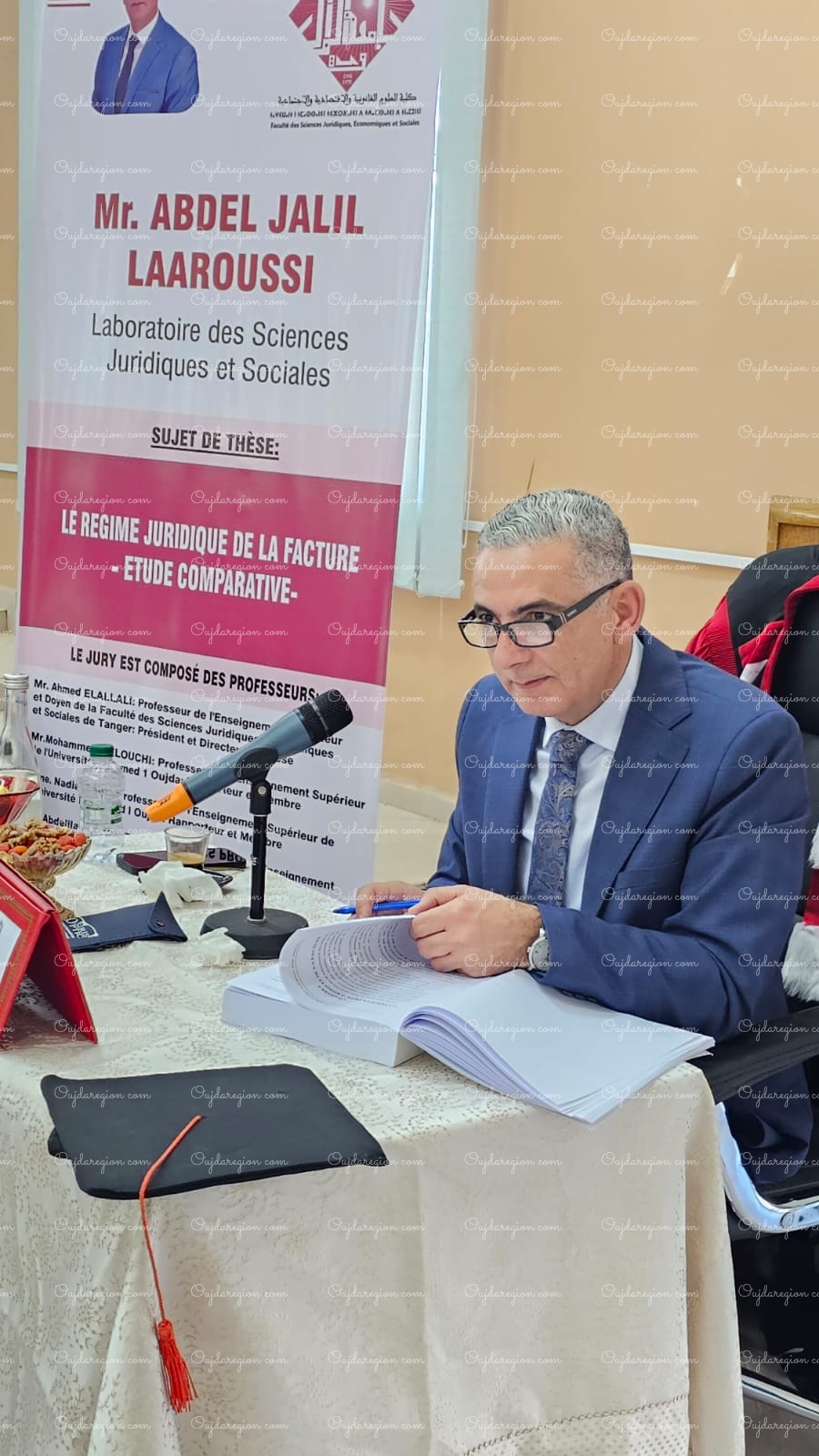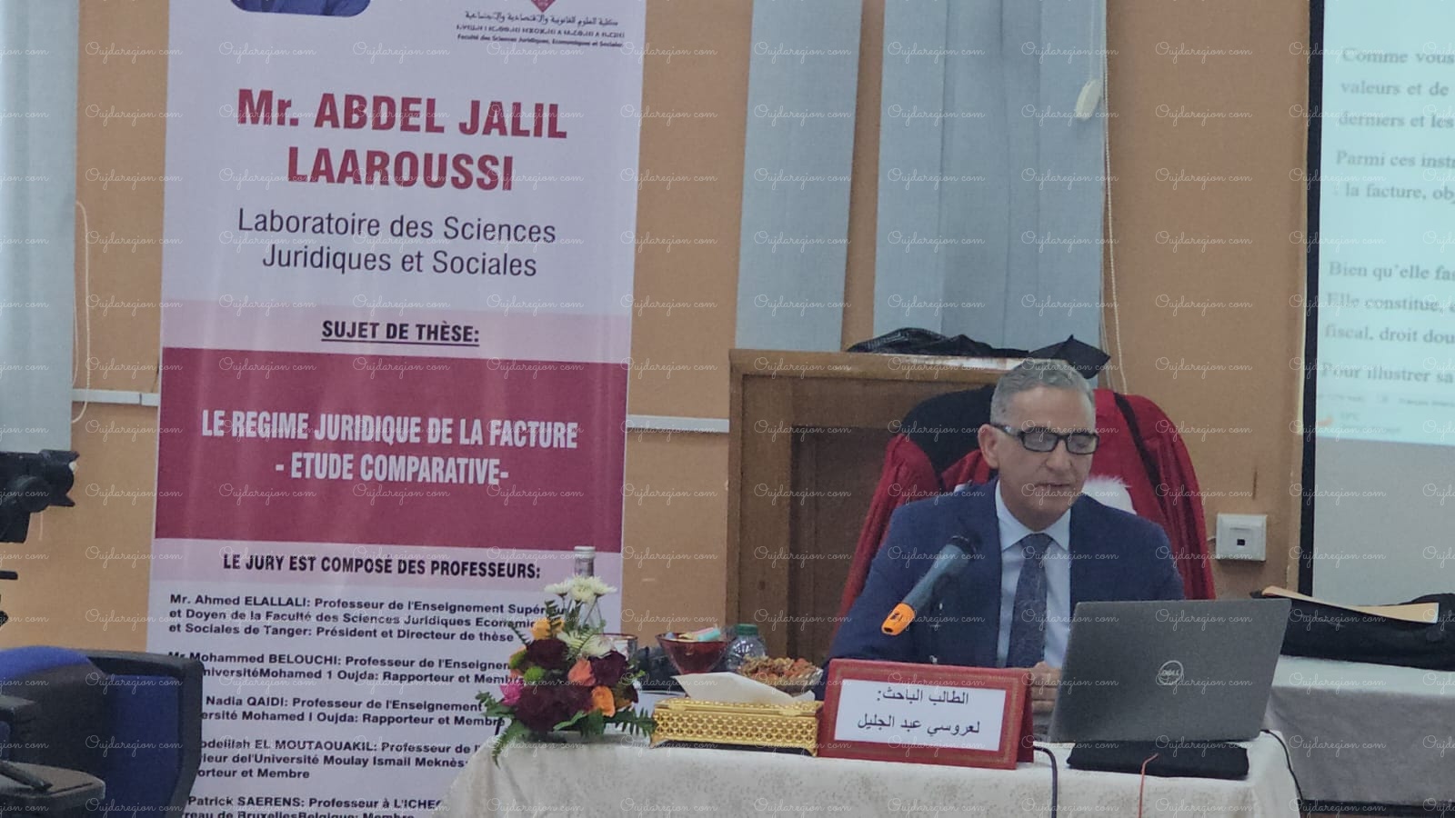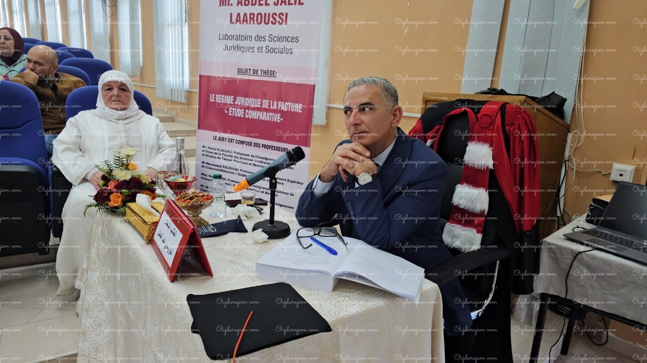 ناقش الأستاذ عبد الجليل العروسي، القاضي السابق بالمحكمة الإدارية الابتدائية بوجدة، والمستشار الحالي بمحكمة الاستئناف الإدارية بطنجة، نهاية الأسبوع الجاري بكلية العلوم القانونية والاقتصادية والاجتماعية بجامعة محمد الأول بوجدة، أطروحته لنيل الدكتوراه في القانون الخاص، والتي حملت عنوان “النظام القانوني للفاتورة: دراسة مقارنة” وهو موضوع يناقش في الدكتوراه على الصعيد الوطني، وذلك تحت إشراف الدكتور عميد كلية الحقوق بطنجة أحمد العلالي.