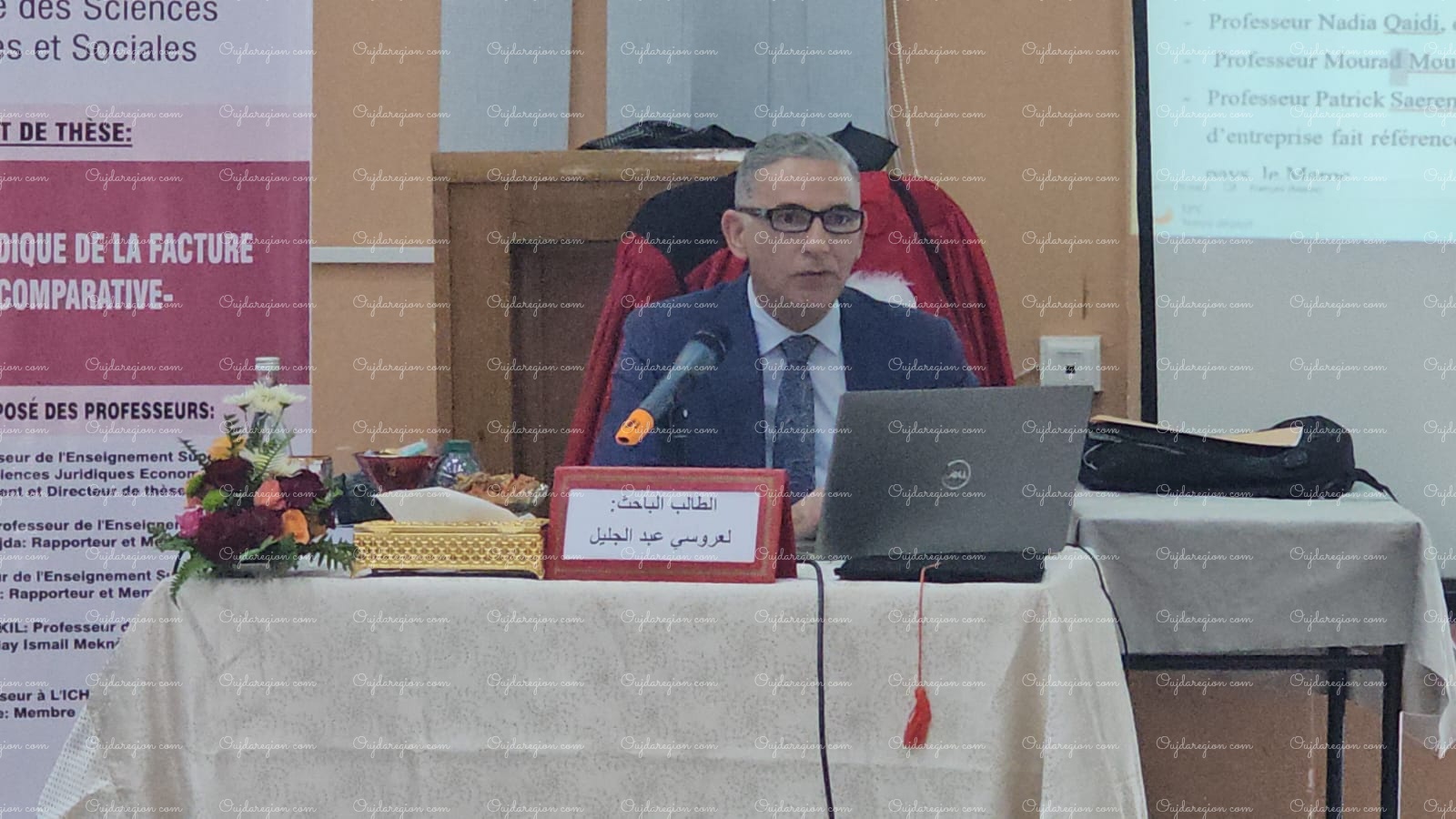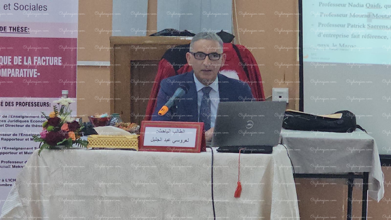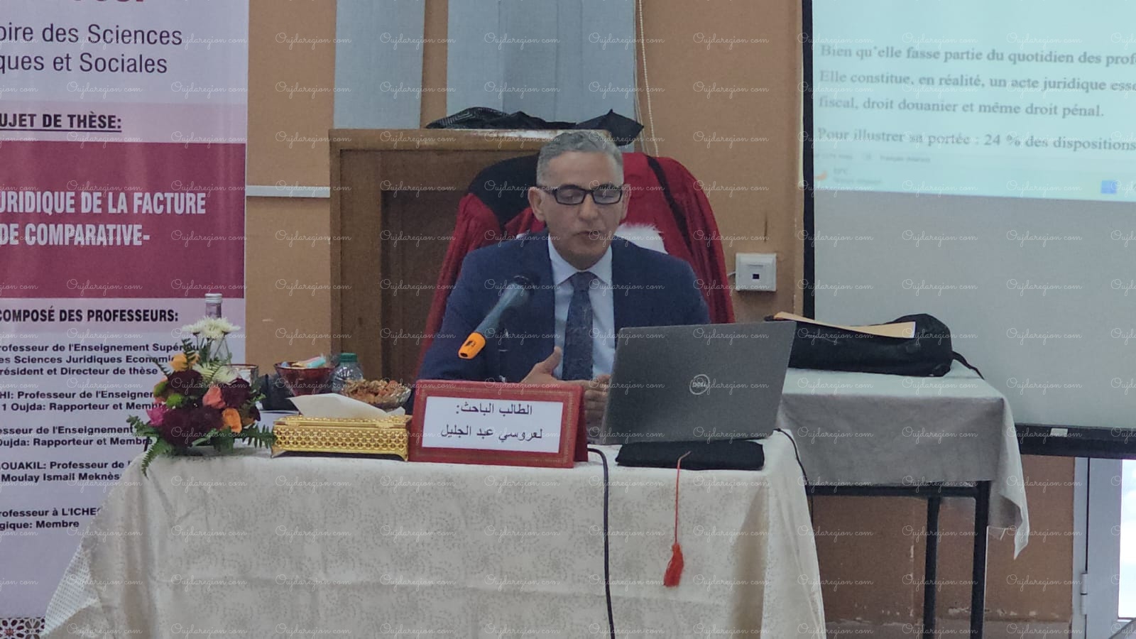 ناقش الأستاذ عبد الجليل العروسي، القاضي السابق بالمحكمة الإدارية الابتدائية بوجدة، والمستشار الحالي بمحكمة الاستئناف الإدارية بطنجة، نهاية الأسبوع الجاري بكلية العلوم القانونية والاقتصادية والاجتماعية بجامعة محمد الأول بوجدة، أطروحته لنيل الدكتوراه في القانون الخاص، والتي حملت عنوان “النظام القانوني للفاتورة: دراسة مقارنة” وهو موضوع يناقش في الدكتوراه على الصعيد الوطني، وذلك تحت إشراف الدكتور عميد كلية الحقوق بطنجة أحمد العلالي.