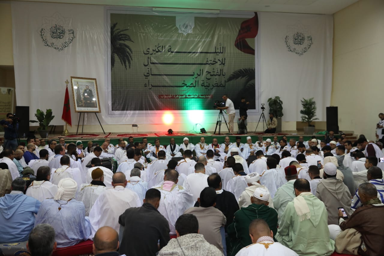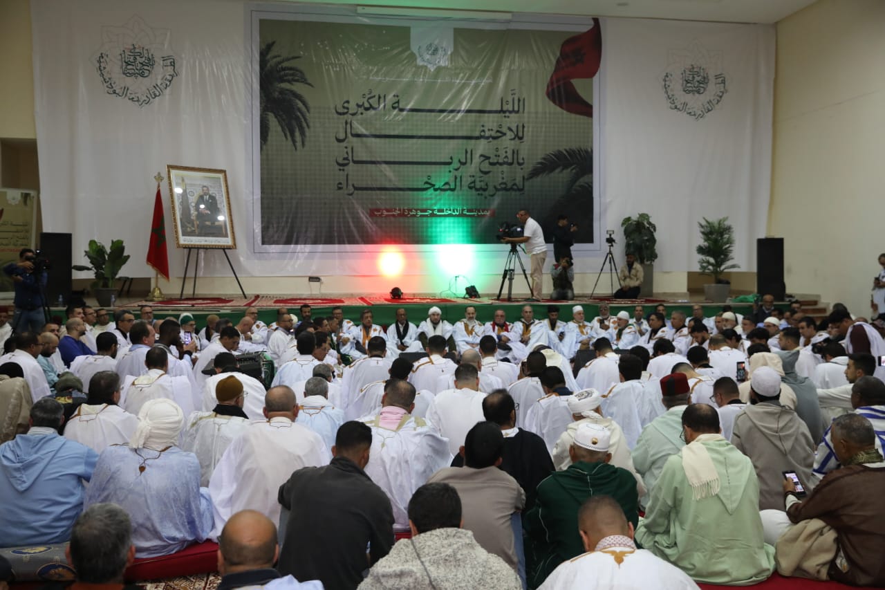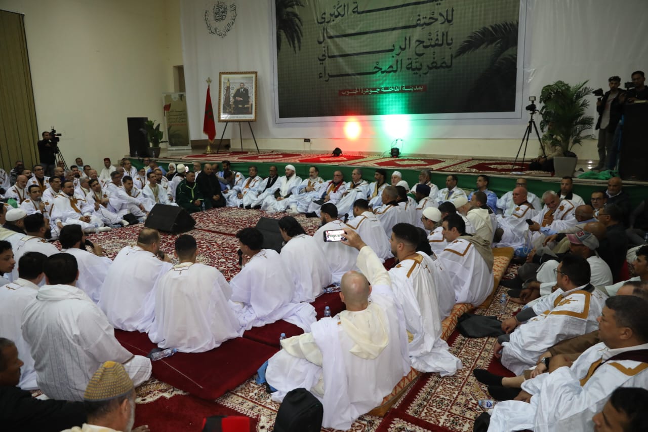 شاهدوا وصول الشيخ معاذ القادري بودشيش لقلب الصحراء المغربية لإحياء ليلة كبرى بالداخلة