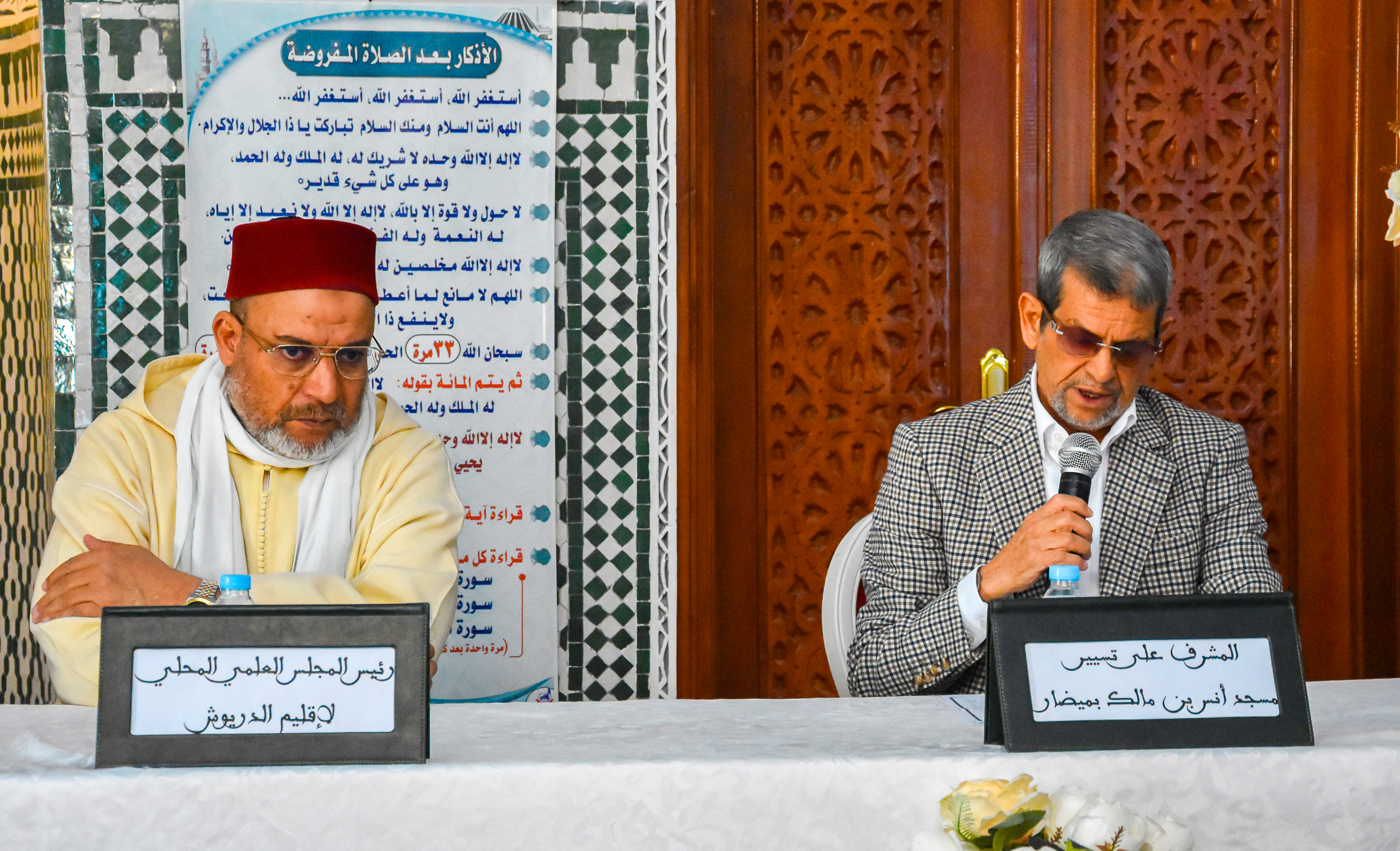 واستهل الحفل بتلاوة آيات من الذكر الحكيم، أعقبتها كلمة لرئيس المجلس العلمي المحلي الدكتور بنعيسى بويوزان، ثم كلمة المندوب الإقليمي للشؤون الإسلامية، قبل تقديم اللجنة المسيرة للمسجد لكلمتها الترحيبية والتي أكدت من خلالها انخراطها الدائم في احتضان وتنظيم مختلف الملتقيات الدينية بالمسجد.