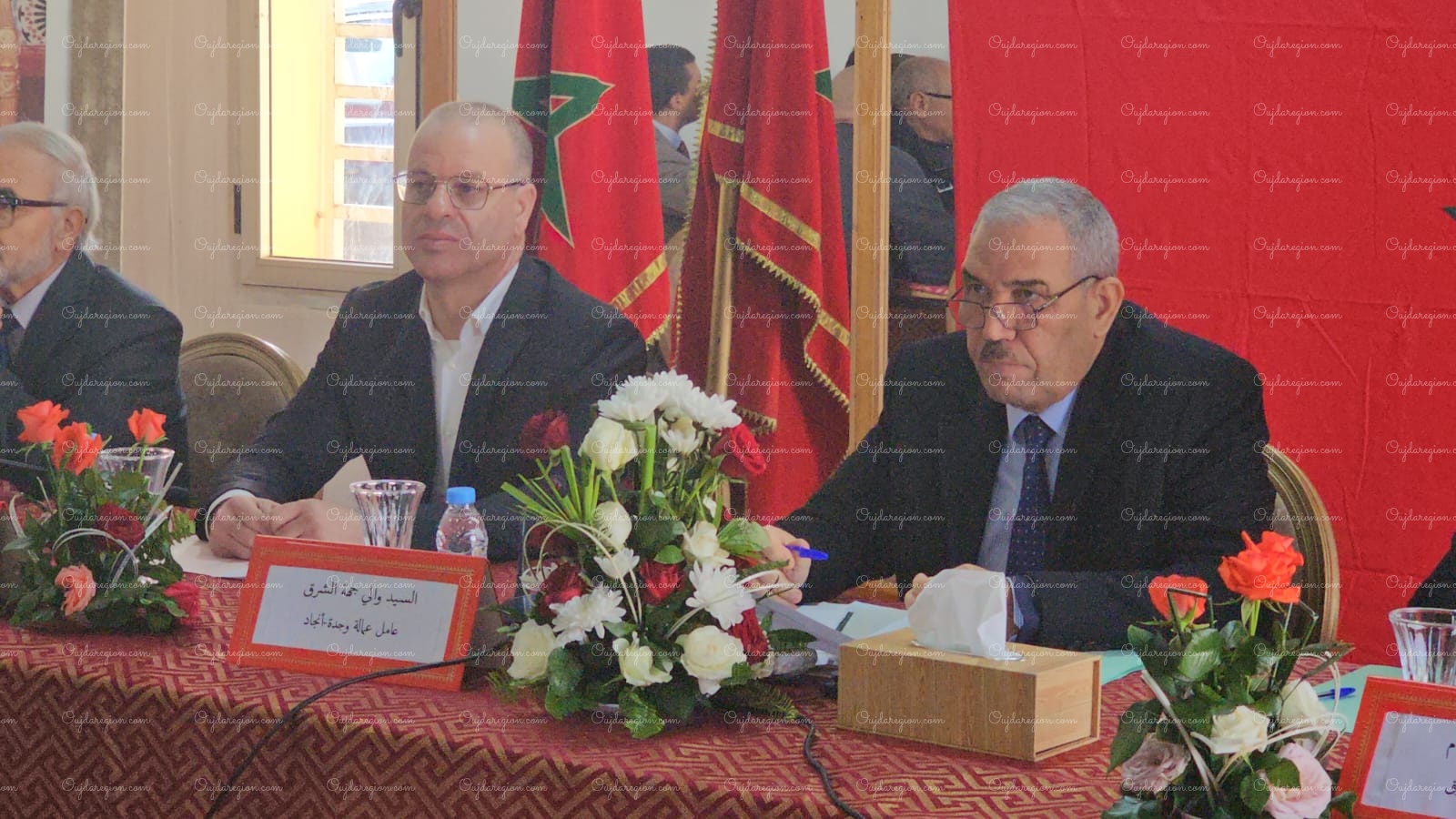 بحضور بوعرورو رئيس مجلس الجهة الوالي العطفاوي و عمال الأقاليم في لقاء لتتبع مستوى خدمات شركة التنمية ووكالة تنفيذ المشاريع ودراسة اتفاقية تأهيل المراكز القروية بجهة الشرق