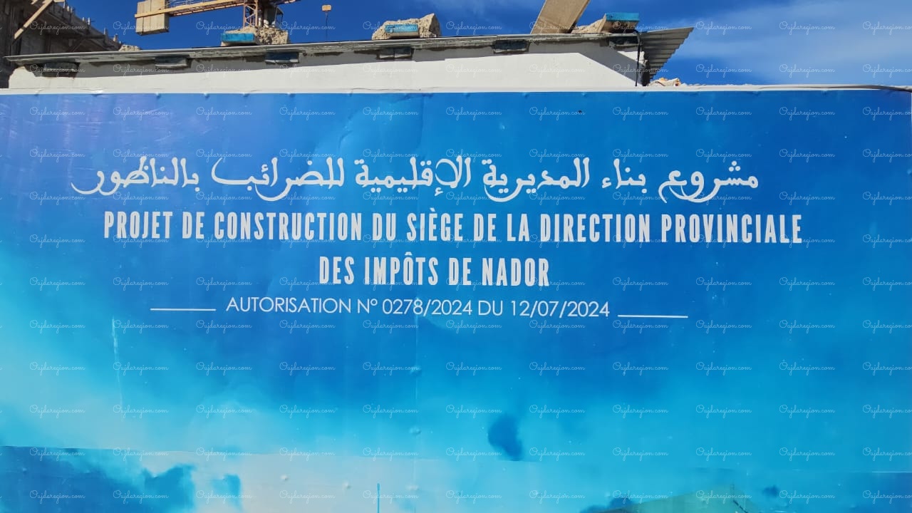 من القلب الاقتصادي لجهة الشرق مدينة الناظور،حيث ورش بناء المديرية الاقليمية للضرائب على مساحة تقارب الهكتار، يسير بخطى ثابتة وجودة في التنزيل نحو صرح يواكب مستقبل المنطقة ويتناغم مع الورش الملكي ميناء الناظور غرب المتوسط.
