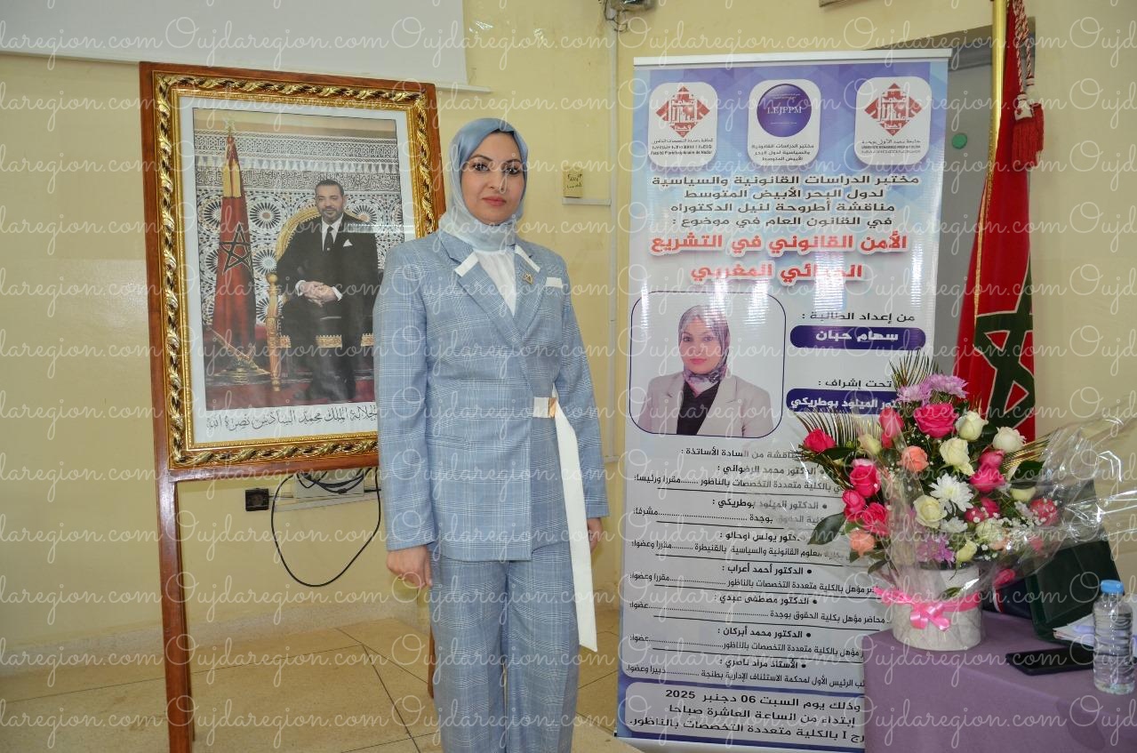 شهدت صبيحة السبت 6دجنبر 2025 بالكلية المتعددة التخصصات بالناظور مناقشة أطروحة الدكتوراه في القانون العام ، ضمن مختبر الدراسات القانونية والسياسية لدول البحر الأبيض المتوسط، تقدّمت بها الطالبة الباحثة سهام حبان، تحت عنوان: