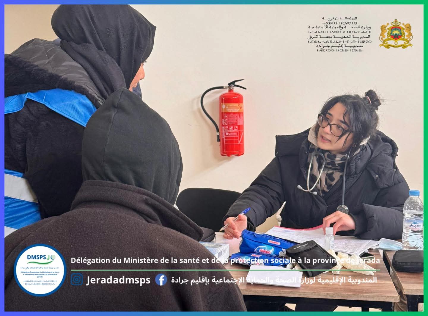 في إطار عملية “رعاية” الرامية إلى التخفيف من الآثار الصحية والاجتماعية لموجة البرد، وتعزيز الولوج إلى الخدمات الصحية لفائدة الساكنة المتضررة، وبتنسيق وشراكة مع المندوبية الإقليمية لوزارة الصحة والحماية الاجتماعية بجرادة، تم تنظيم قافلتين طبيتين متعددتي التخصصات، يوم الأحد 25 يناير 2026، بكل من عين بني مطهر وجماعة سيدي بوبكر.