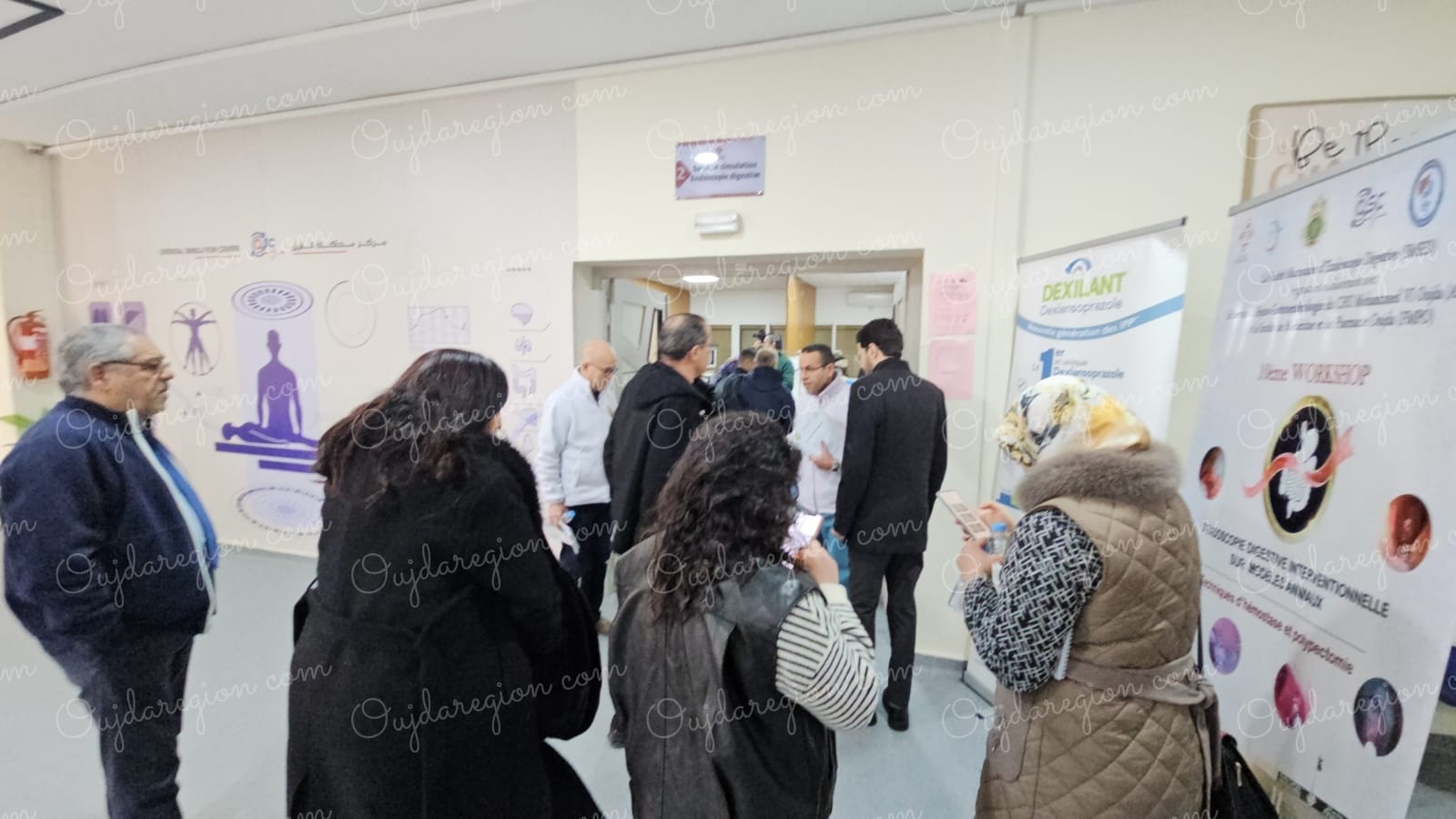 التظاهرة العلمية التي تميزت بحضور البروفيسور عادل ابراهيمي العميد السابق لكلية الطب بفاس ورئيس مصلحة الجهاز الهضمي بالمستشفى الجامعي بفاس،ورئيس الجمعية المغربية للتنضير الداخلي،وحضرها 30 إختصاصيا و أطباء في نهاية تخصص الجهاز الهضمي بالجهة الشرقية من وجدة بركان الناضور الدريوش جرادة و بوعرفة، شكلت فرصة علمية جد قيمة عبر ورشات تعالج وقف النزيف الناتج عن القرحة المعدية والدوالي عند مرضى التشمع الكبدي و ذلك بواسطة المنظار دون اللجوء للجراحة. كذلك إزالة الأورام الحميدة بواسطة المنظار و قسطرة القنوات المرارية و البنكرياس لإزالة الحصى بالمنظار كذلك.