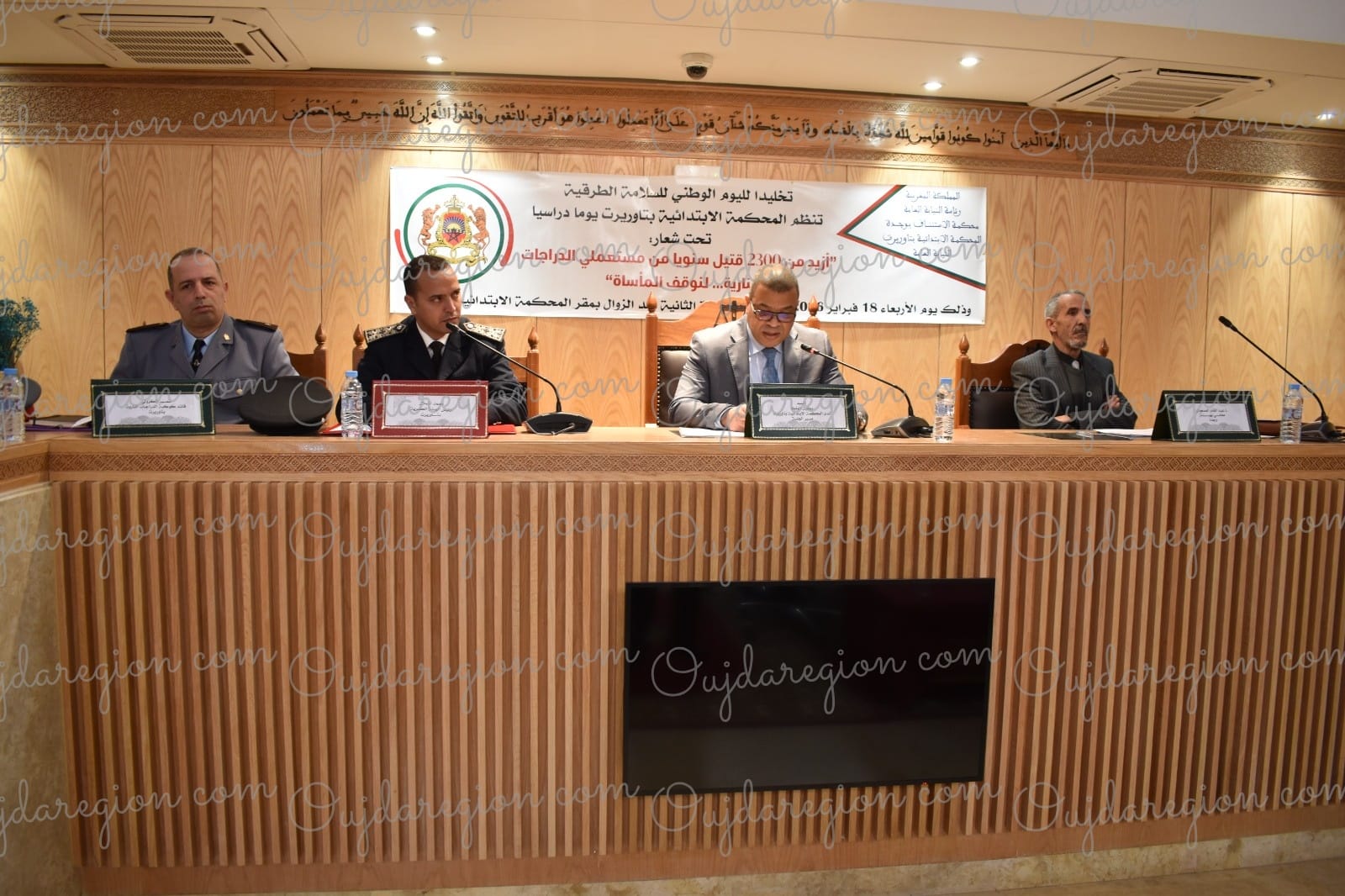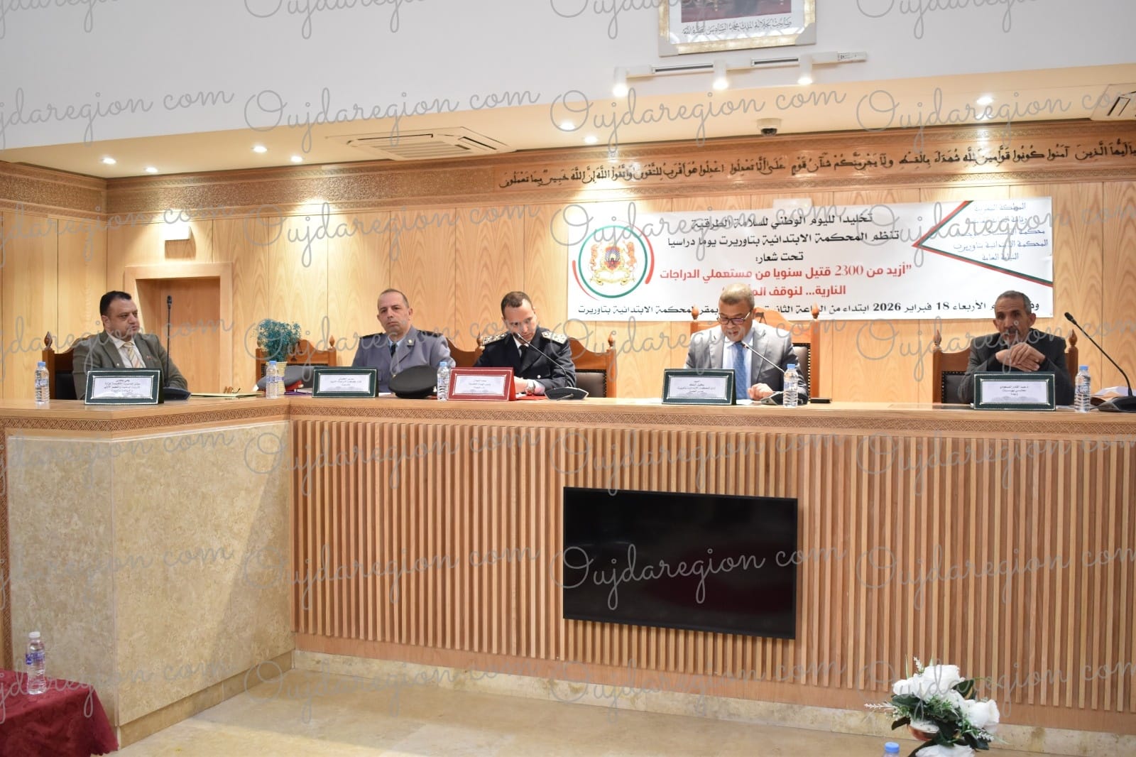 برحاب المحكمة الابتدائية بتاوريرت،نظم امس الاربعاء، يوما دراسيا بمناسبة اليوم الوطني للسلامة الطرقية،تحت شعار:”ازيد من 2300 قتيل سنويا من مستعملي الدرجات النارية..لنوقف الناساة”،حضره رئيس المحكمة الاستاذ عمرو بنعلي،والسادة القضاة ونواب وكيل الملك وممثلة وكالة السلامة الطرقية،والدرك الملكي والأمن الوطني واطر المحكمة ومحامين ومهتمين بالموضوع.
