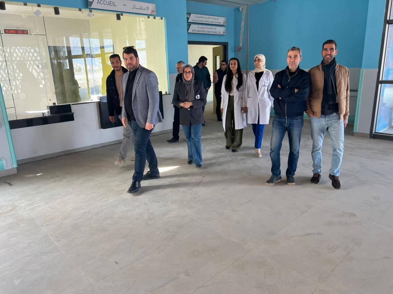 تنزيلا لبرنامج الزيارات الميدانية الذي سطرته مندوبية وزارة الصحة والحماية الاجتماعية للمركز الإستشفائي الإقليمي الناظور الجديد، قامت السيدة المندوبة الإقليمية لوزارة الصحة والحماية الاجتماعية، رفقة الطاقم الإداري والأطر الصحية بمختلف تخصصاتها و الممارسة بالقسم الطبي بالمستشفى الإقليمي الحسني، يومه الإثنين 16 مارس 2026 بزيارة إلى المركز الاستشفائي الإقليمي الجديد، وذلك بهدف تمكين الأطر الصحية من التعرف عن قرب على مختلف مرافق المستشفى الجديد، والإطلاع على فضاءاته التنظيمية وظروف العمل المرتقبة به، إلى جانب فتح المجال للإستماع إلى ملاحظاتهم وإقتراحاتهم المهنية، بما يساهم في تحسين ظروف العمل وتجويد تنظيم الخدمات الصحية داخل هذا المرفق.