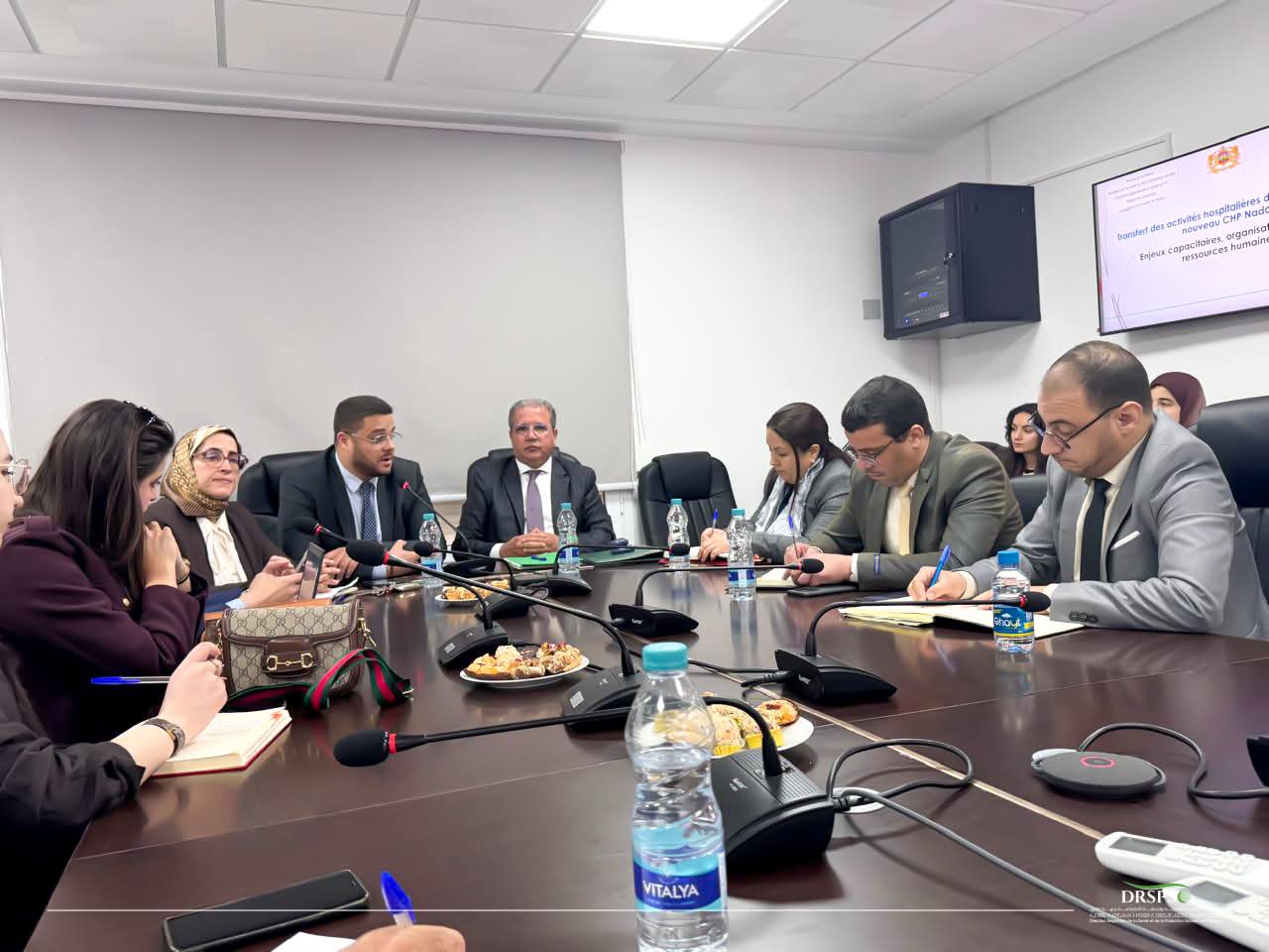 وقد خُصص اللقاء الأول لمواكبة مشروع الانتقال إلى المركز الاستشفائي الإقليمي الجديد بالناظور، مع جميع مسؤولي المركز الاستشفائي الإقليمي الحالي من السيدات والسادة رؤساء الأقطاب و السيدات و السادة رؤساء المصالح، حيث تم تقديم عرض مفصل حول عملية نقل الأنشطة الاستشفائية من المركز الاستشفائي الحسني نحو المركز الجديد، مع إبراز التحديات المرتبطة بالطاقة الاستيعابية، والتنظيم، وتدبير الموارد البشرية.